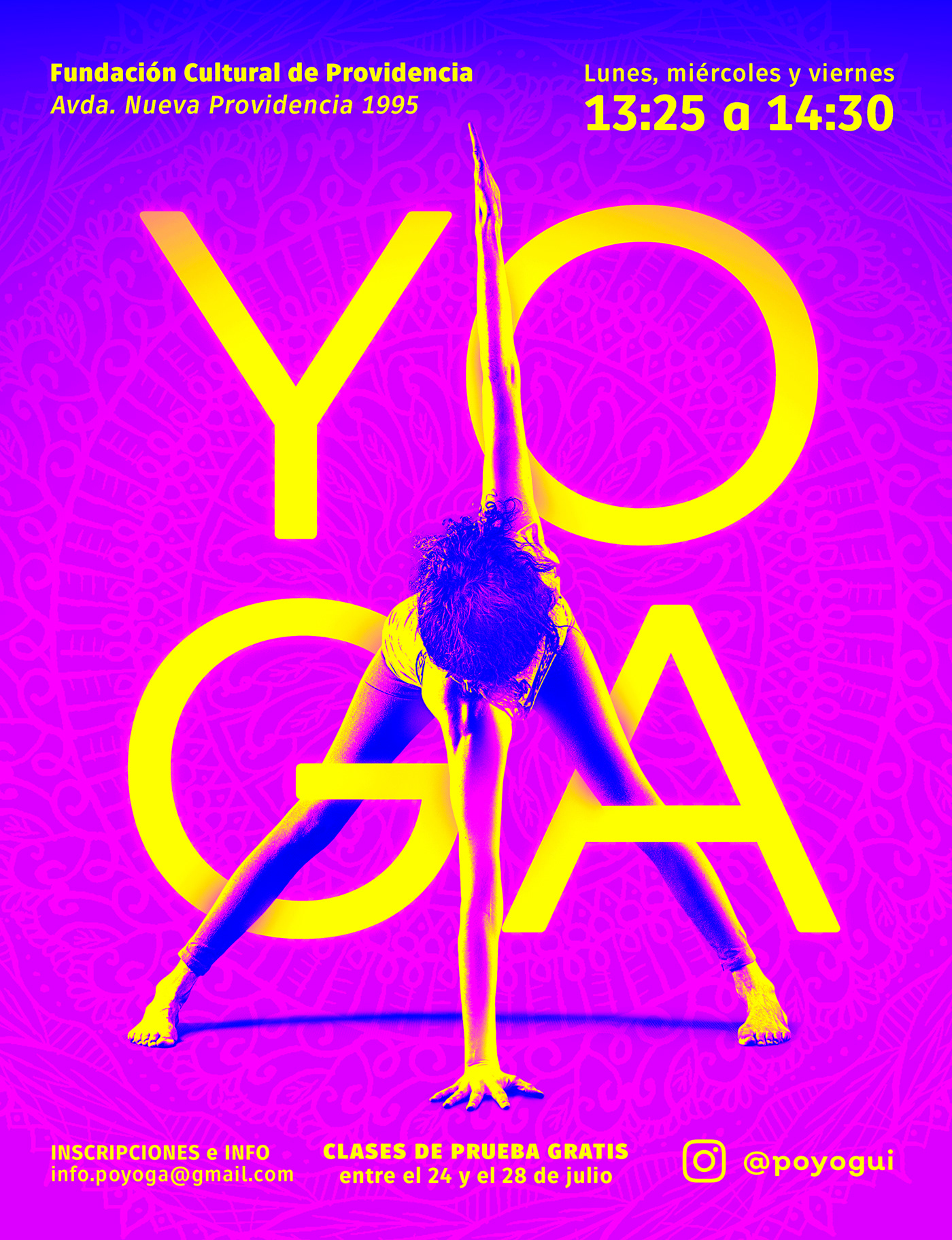 We designed the posters to be different to everything you expect about yoga: typically soft colors, clean backgrounds, lots of script fonts, etc.